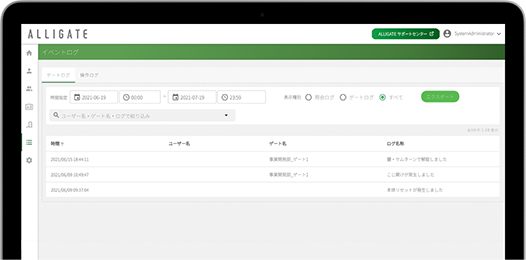 Webブラウザ上でALLIGATEの全ての機器、ユーザー等のデータ管理ができます。